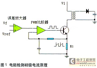 設(shè)計過載保護就需要檢測電路中的電流,DC-DC轉(zhuǎn)換器的電流取樣可以直接檢測輸出回路的電流,例如次級整流回路的電流;也可以檢測初級回路的電流,例如流過功率MOSFET管的電流。