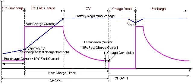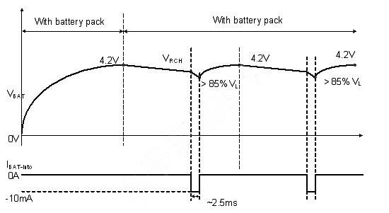 然而,當(dāng)電池故障時,電池可能無法儲存電能,電壓抑不會升高,所充入的能量轉(zhuǎn)變成熱,除了依靠過溫度保護(hù)機(jī)制之外,IC內(nèi)部亦具有超時計時器,無論此時電池電壓狀態(tài)如何,只要超過設(shè)定充電時間后,隨即關(guān)閉充電器,以達(dá)到多重保護(hù)使用者之功能。