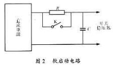 開關(guān)穩(wěn)壓電源的電路比較復(fù)雜,基本上可以分為小功率的控制部分和大功率的開關(guān)部分。開關(guān)晶體管則屬大功率,為保護(hù)開關(guān)晶體管在開啟或關(guān)斷電源時的安全,必須先讓調(diào)制器、放大器等小功率的控制電路工作。為此,要保證正確的開機程序。開關(guān)穩(wěn)壓器的輸入端一般接有小電感、大電容的輸入濾波器。在開機瞬間,濾波電容器會流過很大的浪涌電流,這個浪涌電流可以為正常輸入電流的數(shù)倍。這樣大的浪涌電流會使普通電源開關(guān)的觸點或繼電器的觸點熔化,并使輸入保險絲熔斷。另外,浪涌電流也會損害電容器,使之壽命縮短,過早損壞。為此,開機時應(yīng)該接入一個限流電阻,通過這個限流電阻來對電容器充電。為了不使該限流電阻消耗過多的功率,以致影響開關(guān)穩(wěn)壓器的正常工作,而在開機暫態(tài)過程結(jié)束后,用一個繼電器自動短接它,使直流電源直接對開關(guān)穩(wěn)壓器供電,如圖2所示。這種電路稱之謂開關(guān)穩(wěn)壓器的“軟啟動”電路。