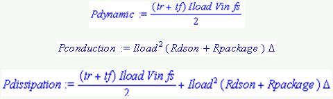 其中:tr和tf =上升和下降時(shí)間;Vin =輸入電壓;ILoad =負(fù)載電流;Fs =開關(guān)頻率;RDS(ON) = MOSFET導(dǎo)通電阻;ΔPWM = 占空周期;Rpackage =封裝阻抗;