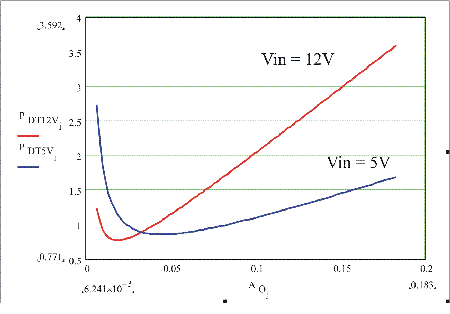 如圖5所示,功耗是裸片面積的函數(shù),周圍是針對(duì)輸入電壓為5到12V的頂部MOSFET的最合適值。這清楚地表面,損耗高度依賴于裸片面積以及如果裸片面積增加或減少時(shí)這些損耗所增加或減小的劇烈程度。