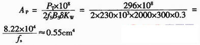 其中,電流密度δ=300A/cm2,輸出功率PT=136W,窗口占空系數(shù)Kw=0.4。