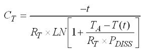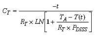 該模擬可以深入進(jìn)行,以描述器件的另一個(gè)熱屬性,稱之為熱容。正如將熱阻模擬為電阻,可以將熱容(CT,單位為J/℃)模擬為電容。將熱容與熱阻并聯(lián)獲得熱阻抗(ZT)。圖1所示為傳導(dǎo)傳熱的簡(jiǎn)化RC模型。能源被模型化為電流源,熱阻抗被模型化為CT與RT并聯(lián)。