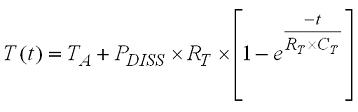 圖5顯示等效的電感溫度上升與時(shí)間大約具有一階指數(shù)關(guān)系。這再次得出等式: