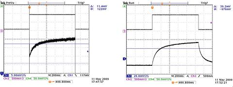 因?yàn)殡娏饔行┹p微依賴MOSFET的導(dǎo)通電阻,所以有必要在電流接近目標(biāo)閃光電流時(shí)測(cè)量 PFET電阻。使用大測(cè)試電流的問(wèn)題是它們可能導(dǎo)致器件發(fā)熱??朔藛?wèn)題的方法是將閃光超時(shí)時(shí)間設(shè)置為最低 32ms,并在示波器上測(cè)量PFET的電壓降。在+25℃到+125℃的情況下,使用1.2A閃光電流,結(jié)果顯示的斜率大約為 0.42mΩ/℃ 。要注意的一個(gè)事情是PFET通過(guò)VOUT引腳供電,因此VOUT=5V時(shí),其導(dǎo)通電阻會(huì)低于VOUT=3.9V時(shí)的電阻值。