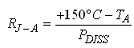 我們需要的是代表實(shí)際電路的準(zhǔn)確RJ-A。測(cè)量RJ-A有多種方法,一種方法是使用熱關(guān)機(jī)閾值,將其設(shè)置為+150℃。要用這種方法測(cè)量RJ-A,我們可以讓LM3554在已知功耗(PDISS)下工作,然后慢慢提高環(huán)境溫度直到器件關(guān)機(jī)為止。該器件具有一個(gè)內(nèi)部標(biāo)志,可以通過(guò)I2C兼容接口設(shè)置,在觸及熱關(guān)機(jī)閾值時(shí)會(huì)返回‘1’。使用這種方法獲得的RJ-A將為: