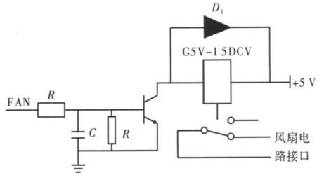 電路如圖6 所示,F(xiàn)AN 為低電平時(shí),晶體管9014 不導(dǎo)通,此時(shí)繼電器無(wú)動(dòng)作; 當(dāng)FAN 為高電平時(shí),晶體管9014 導(dǎo)通,使得繼電器觸點(diǎn)吸合,風(fēng)扇在24 V 電源電壓的供電下開(kāi)始工作。