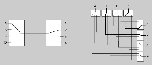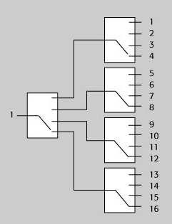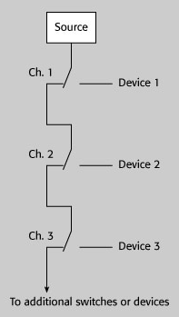 層疊開關(guān)架構(gòu)是多位置開關(guān)的一種替代形式。它采用多個(gè)繼電器將一個(gè)輸入連接到多個(gè)輸出。路徑長度(同時(shí)決定了相位延遲)是由信號(hào)經(jīng)過的繼電器的數(shù)量決定的。