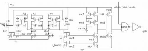 本文提出了一種新型的電流極限比較器結(jié)構(gòu),其采用電流鏡結(jié)構(gòu)代替?zhèn)鹘y(tǒng)的電阻網(wǎng)絡(luò)產(chǎn)生開(kāi)關(guān)電源所需的幾種極限電流, 采用cascode 結(jié)構(gòu)組成電流比較器代替?zhèn)鹘y(tǒng)的電壓比較器使兩種電流直接比較。此結(jié)構(gòu)不需要開(kāi)關(guān)管和電阻網(wǎng)絡(luò), 使得芯片面積大幅度降低, 減小了成本,同時(shí)具有速度快, 功耗低, 精度高的優(yōu)點(diǎn)。