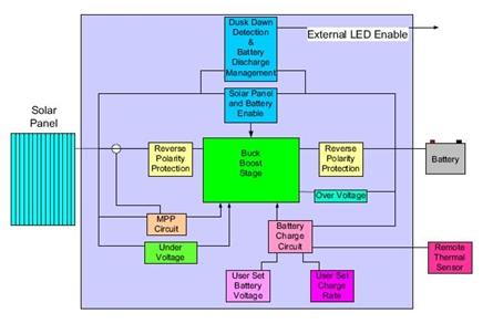設計工作包括根據(jù)功率需求的增加隔離拓撲結構。電池充電狀態(tài)的管理是由適當?shù)某潆娝惴ㄍ瓿傻?。太陽能電池板安裝技師可以選擇輸出電壓和電池充電速率。由于控制器要連接到太陽能電池板,它必須具有最大功率點跟蹤,為最終客戶提供高價值??刂破饔袃蓚€正使能(Enable)電路,一個電路檢測黑夜時間,另一個檢測電池的充電狀態(tài),使外部電路不會使電池對損壞點放電。由于控制器將由不同程度經(jīng)驗的現(xiàn)場技術人員和新手安裝,因此重要的是輸入和輸出必須有反向極性保護。另外,控制器和電池可能安裝在過熱或過冷的位置,控制器必須采用電池充電溫度補償。設計還應包括安全功能,如電池過壓檢測和太陽能電池板欠壓檢測。