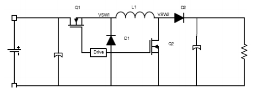 四開關非反相降壓-升壓有兩種操作模式,即降壓模式和降壓-升壓模式。在降壓模式下,轉換器產(chǎn)生輸入電壓脈沖,它經(jīng)過 LC 濾波來產(chǎn)生一個較低的直流輸出電壓。輸出電壓可以通過修改相對于開關周期或開關頻率的導通時間來改變。
