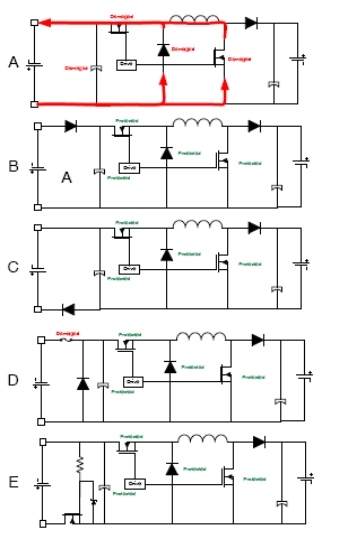 當選擇太陽能控制器拓撲結構時,重要的是要了解轉換器的基本操作及其局限性。選擇的拓撲結構是非反相四開關非同步降壓-升壓拓撲結構。轉換器利用來自 NCP1294 的控制信號運行,Q1 和 Q2 同時導通為 L1 充電。四開關降壓-升壓拓撲結構如圖 3 所示,其中的電感器用來控制電壓和電流。