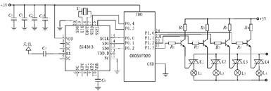 Si4313 的RX 端口經(jīng)電容C1與天線相連, 接收遙控調(diào)制載波信號。Si4313 與單片機之間的通信是通過SPI 總線實現(xiàn),SPI 總線讀寫操作由以下幾部分組成:讀寫標志(1 bit),地址(7 bits)和數(shù)據(jù)(8 bits)。讀寫標志位指示當前操作是讀還是寫;7 位地址指示操作對象, 可尋址128 個8 位控制寄存器中的任意一個; 數(shù)據(jù)域包含寫入或讀出的Si4313 內(nèi)部寄存器的內(nèi)容。Si4313 的SCLK、SDI、SDO、nSEL、nIRQ 端口分別與單片機的P0.0~P0.4 端口相連。SCLK 為時鐘接口;SDI為串行數(shù)據(jù)寫入端口, 由單片機對Si4313 進行數(shù)據(jù)寫入;SDO 為串行數(shù)據(jù)輸出端口,解調(diào)后數(shù)字信號由此端口輸出至單片機。單片機P1.0~P1.3 為控制端口,與開關(guān)電路相連。