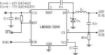 圖1 LM3402的典型應(yīng)用電路示意圖