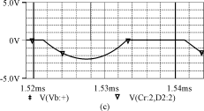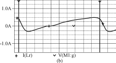 由圖4可知,當開關導通時,開關電壓V(M1:d)(Vds)下降,由于電感Lr的作用,電流不能突變,使得開關電流is在開關電壓V(M1:d)(Vds)降到零后,才從零開始上升,實現(xiàn)了開關的零電流導通。當開關關斷時,由于電容Cs的鉗壓作用,開關電壓從低電壓上升,基本實現(xiàn)零電壓關斷。而電感電流iLr和電壓vcr波形與理論分析的是一致的。