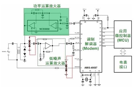 例如,安森美半導(dǎo)體推出了支持 2.4 kb的更高半雙工可調(diào)節(jié)通信速率、符合IEC61334-5-1標(biāo)的AMIS-49587高集成度低功率PLC調(diào)制解調(diào)器方案,以及能驅(qū)動(dòng)高達(dá) 2 A電流的高能效的A/B類(lèi)低失真線(xiàn)路驅(qū)動(dòng)器——NCS5650,能夠很好地配合智能電表PLC調(diào)制解調(diào)器及線(xiàn)路驅(qū)動(dòng)應(yīng)用。