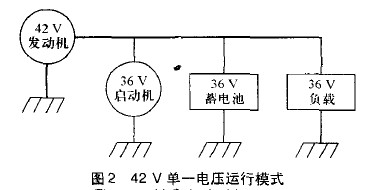 在新的電氣系統(tǒng)中,有兩種實施方案:一種是全車42V單一電壓方案;另一種是42V/14V雙電壓方案5。