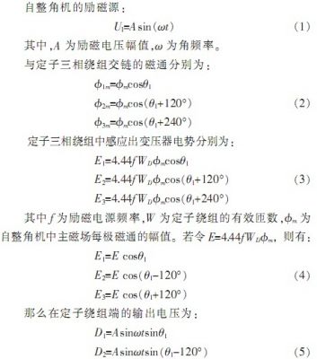 如圖1所示,自整角機(jī)主要由定子和轉(zhuǎn)子組成,定子和轉(zhuǎn)子問有很小的空氣隙,自整角機(jī)的激磁磁場,是一個磁場軸線在空間固定于激磁繞組軸線上,磁通密度分布曲線的幅值隨時間交變的脈振磁場。當(dāng)轉(zhuǎn)子繞組偏離中線位置時,轉(zhuǎn)子激磁繞組所產(chǎn)生的脈振磁通必定和定子各相繞組相匝鏈,因而在定子各相繞組中感應(yīng)出電勢。