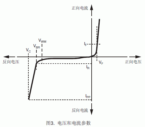 斷態(tài)電壓指的是TVS在未擊穿情況下所能承受的最高電壓,它是在正常情況下不工作電路中保護器件的重要參數(shù)。在汽車中,一些汽車電子產(chǎn)品規(guī)范是根據(jù)“跳線跨接起動保護”的情況制定的。這種情況要求為12V類型電子設備提供10分鐘24VDC,或為24V類型電子設備提供10分鐘36VDC,而不損壞電路或者引起電路故障。因此,斷態(tài)電壓是汽車電子產(chǎn)品中TVS的一項關鍵參數(shù)。