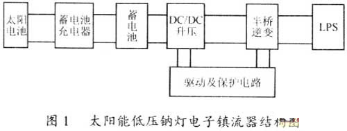 太陽能低壓鈉燈電子鎮(zhèn)流器是由太陽電池陣列來供電,由于太陽電池陣列具有非線性的電源特性,為保證陣列在任何日照和環(huán)境溫度下都將提供相應(yīng)可能的最大功率輸出,因此,要求鎮(zhèn)流器白天能自動跟蹤最大功率點給蓄電池充電,晚上經(jīng)光控元件檢測太陽電池電壓和定時器件來決定是否自動點亮低壓鈉燈。
