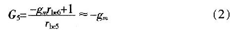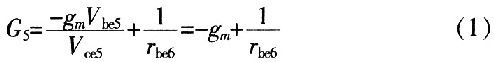 這是一個(gè)負(fù)電導(dǎo)。正電阻吸收能量,負(fù)電阻提供能量,而此處VQ5的集電極到發(fā)射極的負(fù)電導(dǎo)表示晶體管提供能量轉(zhuǎn)換,將直流電源的能量轉(zhuǎn)換為交流能量。同理,VQ6的集電極到發(fā)射極(即BM兩端)的等效電導(dǎo)為-gm。則單端口網(wǎng)絡(luò)AB的輸入電阻是VQ5、VQ6兩端發(fā)射極輸出電阻的串聯(lián),即