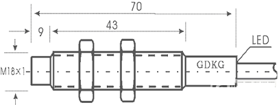 圖2 CLG型M18×70標準結(jié)構(gòu)開關外部尺寸圖