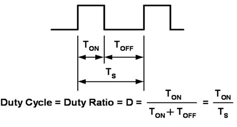 為L(zhǎng)ED提供脈波電流的方法也稱作PWM,這種方法已經(jīng)成為改變光等級(jí)的首選方法。LED本身是矽元件,對(duì)應(yīng)流經(jīng)它們的電流導(dǎo)通及關(guān)閉而快速地導(dǎo)通和關(guān)閉。開關(guān)時(shí)間在100奈秒(ns)等級(jí),相當(dāng)于最大頻率10MHz。應(yīng)用通常以100Hz~100kHz的頻率工作。頻率低于100Hz時(shí),人眼會(huì)觀察到LED光閃爍。頻率在500Hz~20kHz之間時(shí),電路可能產(chǎn)生能聽到的雜訊。調(diào)光是通過在單個(gè)開關(guān)周期的某部分時(shí)間內(nèi)將LED導(dǎo)通;而在此開關(guān)周期的其余部分時(shí)間內(nèi),將LED關(guān)閉來實(shí)現(xiàn)。這種導(dǎo)通關(guān)閉周期稱作工作周期(D),其表達(dá)方式為L(zhǎng)ED導(dǎo)通時(shí)間(TON)除以整個(gè)開關(guān)/導(dǎo)通周期時(shí)間(TS)(圖3)。