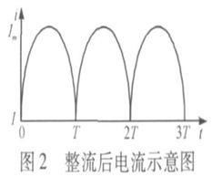 從上式可以看出, I 除了一直流分量之外, 還包含一系列的高頻諧波的交流分量(如圖2 所示波形)。這樣不但影響了電源線上的電流, 并使電流發(fā)生畸變, 同時(shí)也產(chǎn)生射頻干擾。