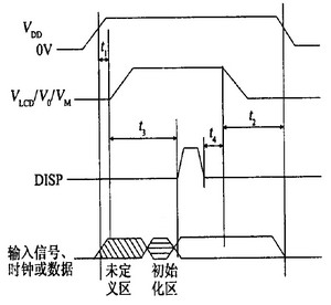 所有液晶顯示器對于上電、下電時(shí)序都有嚴(yán)格要求。如果上電、下電時(shí)序不符合要求,則不能正常顯示,常常會(huì)出現(xiàn)亂碼、鎖存、殘留顯示等現(xiàn)象。以日本日立公司驅(qū)動(dòng)芯片HT66130/HT66137驅(qū)動(dòng)320×240液晶顯示屏為例,對上電、下電時(shí)序的要求如圖3所示,一般液晶顯示驅(qū)動(dòng)芯片要求也大致如此。