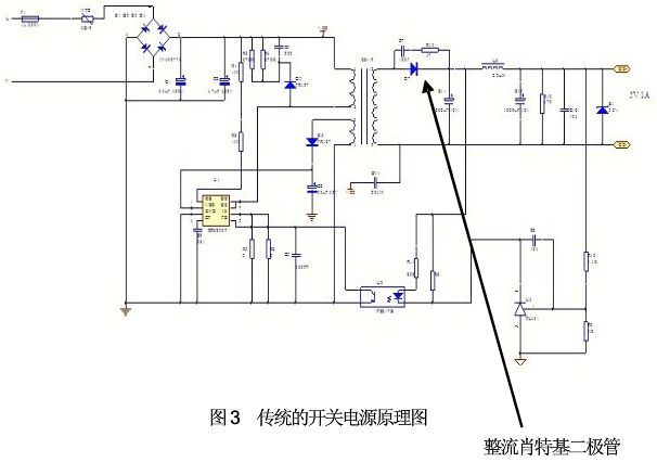 首先,從供電電源來看,如圖3是一個傳統(tǒng)的開關電源原理圖,如果要將5V降為4V,整流肖特基正向壓降所占輸出電壓比重必然增加,開關電源輸出電壓越低,因整流肖特基正向電壓比重越高(其比重X=V壓降/V輸出,輸出從5V降為4V,加入其壓降為0.5V,則其比重將從0.1上升為0.125,提高25%),電源輸出效率就越低,這對于LED屏幕整體節(jié)能效果并不明顯,所以采用這一電源設計原理顯然是是無法實現(xiàn)電源工作效率的提升。同時,5V是標稱值電壓,在市場運用上已經(jīng)相當成熟,啟用新的開關電源電源電壓,降低效率的同時只會增加成本,品質(zhì)也難保障,實現(xiàn)有困難。