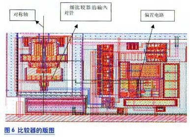 芯片采用了0.18μm的1P6MCMOS設計工藝,在實現(xiàn)高分辨率的同時也能獲得較高的速度,模擬結果表明,分辨率可以達到12bit。在版圖設計中,為了增強差分管的匹配性,管子和連線都采用全對稱的設計結構,版圖如圖6所示,面積為120μm×130μm。