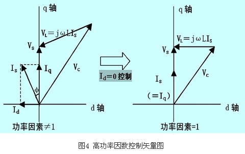 根據(jù)圖4可以知道,要把整流器的功率因數(shù)控制在1.0的話,只要把無(wú)功電流設(shè)定值設(shè)為0(id﹡=0),通過(guò)整流器控制系統(tǒng)調(diào)節(jié)改變輸出電壓vc的大小和相位,使實(shí)際無(wú)功電流分量id=0,那么is=iq+id=iq,is就能與vs保持在同相位,功率因數(shù)控制到了1.0。