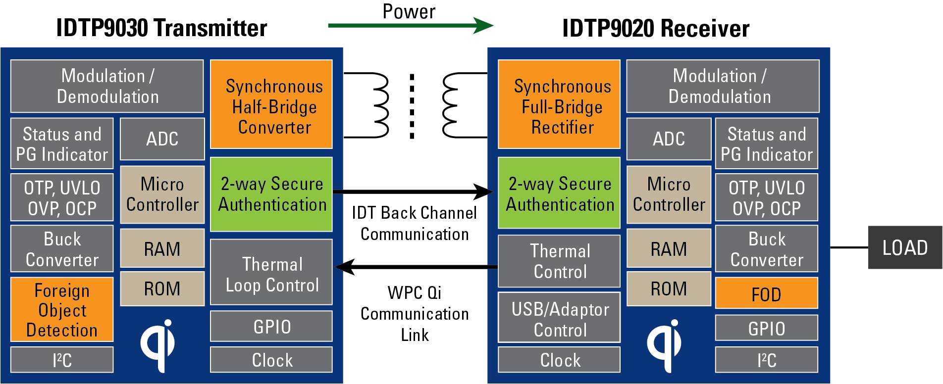 IDTP9030 和 IDTP9020 提供了無線電源發(fā)送器和接收器解決方案,專為滿足無線充電聯(lián)盟(WPC)的 Qi 標準而設(shè)計,可保證與其他滿足 WPC Qi 標準器件的互操作性。發(fā)送器和接收器均能夠進行“多模式”操作,可支持 Qi 標準和專用格式以增加功能、改進安全和提高功率輸出能力。內(nèi)置的協(xié)議檢測可實現(xiàn) Qi 與專用模式間的動態(tài)轉(zhuǎn)換,從而實現(xiàn)平穩(wěn)過渡和可靠的用戶體驗。這些器件可用于大量移動應(yīng)用以進行便利和輕松的電池充電。