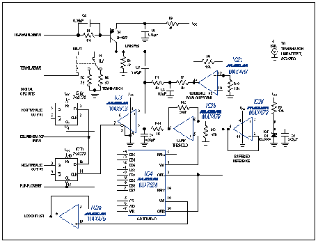 圖8中比較器(IC3)采用單電源供電、地電位檢測以及僅10ns傳輸延遲。DAC (IC4)為雙通道器件,一方面用于脈沖高度測量,另一方面驅(qū)動LCD對比度控制(如圖3)。注意DAC為反向驅(qū)動;電流輸出端連接在一起由經(jīng)過緩沖的電壓基準驅(qū)動,基準輸入作為電壓輸出(每路帶有一個外部放大器緩沖)?! ?br />