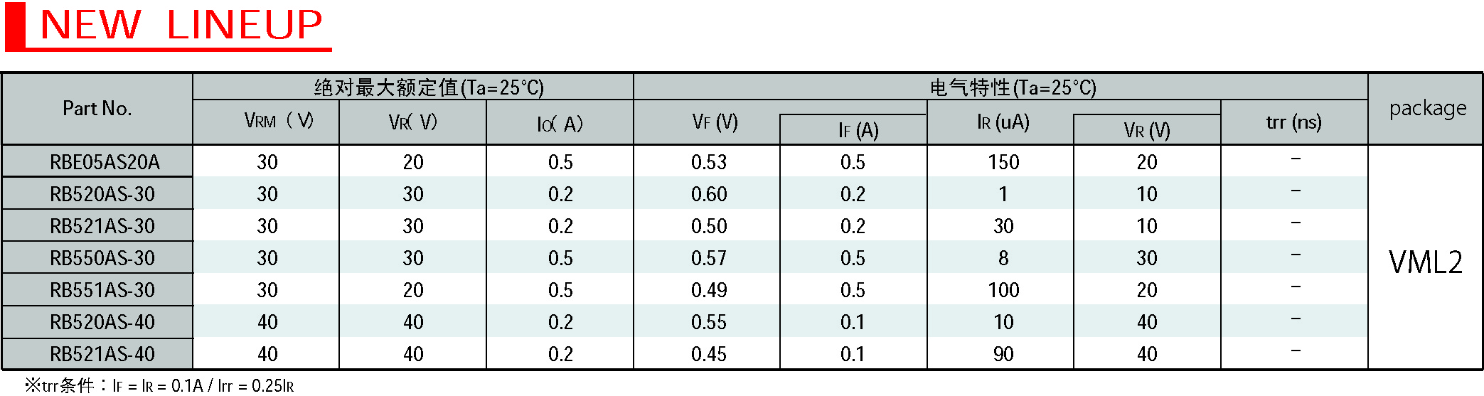 將VML2封裝亦擴(kuò)展應(yīng)用到肖特基勢壘二極管產(chǎn)品。根據(jù)不同用途共推出了七款系列產(chǎn)品。