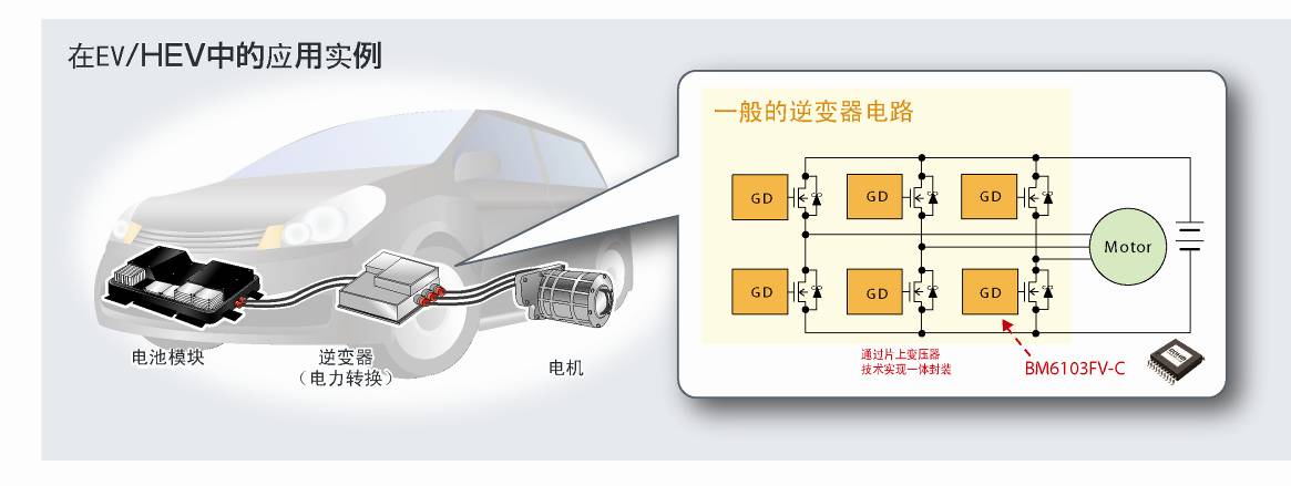 日本知名半導(dǎo)體制造商羅姆株式會(huì)社(總部位于日本京都市)開(kāi)發(fā)出內(nèi)置絕緣元件的柵極驅(qū)動(dòng)器“BM6103FV-C”,最適合作為電動(dòng)汽車(chē)(EV)和混合動(dòng)力車(chē)(HEV)逆變回路中IGBT以及功率MOSFET的驅(qū)動(dòng)元件。