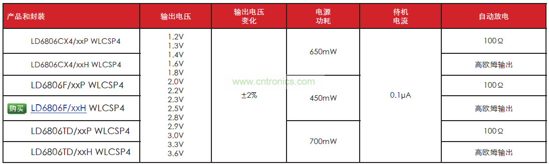 LDO 具有 2.3V 至 5.5V 的輸入電壓范圍,用戶可以訂購從 1.2V 至 3.6V 的 14種不同的輸出電壓。除了大范圍的配置和靈活的封裝選擇之外,LD6806 系列提供 LDO 調(diào)節(jié)器已形成的優(yōu)勢(shì),其中包括低輸出噪音和高電源抑制比 (PSRR)。這些設(shè)備還受益于 10kV 的 HBM ESD 抗擾度、和高達(dá) 700mW 的功耗。