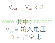 占空比是指開關(guān)導(dǎo)通時(shí)間(活動(dòng)時(shí)間)與變換頻率的整個(gè)期間 T 之間的比率。 然而,上述等式僅在設(shè)備不產(chǎn)生損耗的理想情況下才成立。 真實(shí)情況比較復(fù)雜,實(shí)際性能不僅受損耗的影響,而且還受溫度和時(shí)間變化的影響。
