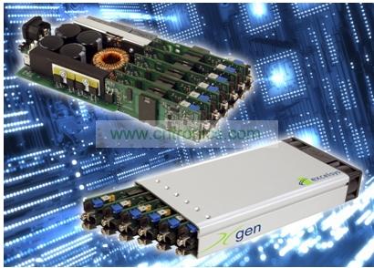 一是機(jī)殼(powerPacs)。作用是將全范圍輸入的市電進(jìn)行整流及PFC功率因素校正,輸出360V直流電壓。目前機(jī)殼有兩個(gè)大類9個(gè)系列的產(chǎn)品可供選擇,兩類產(chǎn)品分別提供4插槽封裝和6插槽封裝,4插槽輸出功率范圍為200W-750W,6插槽輸出功率范圍為400W-1340W,9個(gè)系列分別涵蓋普通應(yīng)用、低噪音、高溫、醫(yī)療認(rèn)證、震動(dòng)、遠(yuǎn)程控制等不同應(yīng)用。