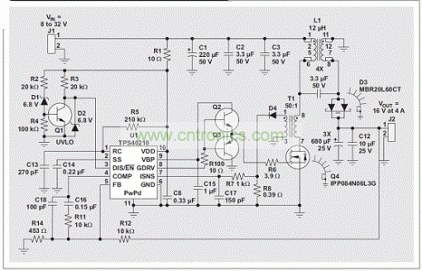 圖 2 使用耦合電感的 SEPIC(4A 時(shí) 16V)