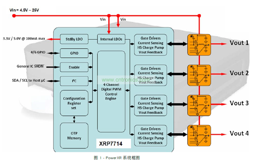 過去可以使用模擬電路或 FPGA 完成相移同步時鐘。 很遺憾,這會增加額外的組件、成本和開發(fā)工作。令人欣慰的是,當今市場上有多個數(shù)字 PWM 控制器集成了同步和相移。在本文中,Exar 的 PowerXR 技術(shù)展現(xiàn)了相移的優(yōu)點,如圖 1 所示。