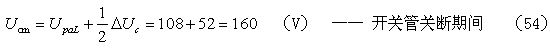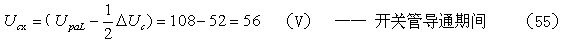 這里順便說明一下,為什么(53)式中的分流系數(shù)取值為0.5,而不是其它數(shù)值。因?yàn)?,分流系?shù)r的取值范圍是0~1,它是一個(gè)動(dòng)態(tài)系數(shù),它的大小,除了與輸入電壓和輸出功率和RCD電路中電容、電阻的大小有關(guān)外,還與開關(guān)管的關(guān)斷時(shí)間,以及電流大小有關(guān)系。