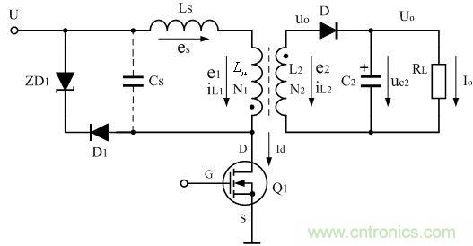 試驗(yàn)時(shí),以輸入電壓和輸出功率的最大值為條件,然后,由大到小,選擇不同容量的電容器做試驗(yàn),用示波器觀測電源開關(guān)管D-S兩端的電壓,直到Uds與最高耐壓BVm兩者之差能滿足余量要求時(shí),為最佳結(jié)果。