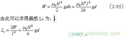 如果我們拿(2-94)式與(2-62)式或(2-89)式進行對比,可以看出,線圈漏感與線圈的電感是沒有本質(zhì)區(qū)別的,只是磁路和磁感應(yīng)強度以及介質(zhì)導(dǎo)磁率等參數(shù)需要根據(jù)實際情況來決定。