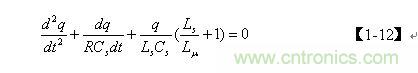 前面已經(jīng)指出,齊次微分方程【1-12】式僅表示電容Cs充滿電后,輸入電壓等于0時,電容兩端電壓或存儲電荷隨時間變化的過程,即,當t = 0時,q從最大值開始隨時間變化的過程。但齊次微分方程【1-12】式并不完全表示電容Cs充、放電的全過程,我們仔細觀察【1-17】式便知:在LC電路中,當t = 0時,如果q 為最大值,電容一定是按余弦規(guī)律放電;如果 q為最小值,則電容一定是按正弦規(guī)律充電。因此,我們還需要根據(jù)初始條件來對【1-10】非齊次微分方程式進一步求解。