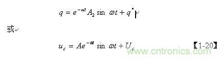 當電源開關管Q1導通時,輸入電壓才開始對電容Cs充電,Cs電容兩端的電壓不可能被充滿電;因此,當 t = 0時,電容Cs兩端的電壓等于0,由此可知,【1-17】式中的A1=0 ,因此,【1-17】式可以改寫為: