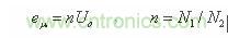值得注意的是,當電源開關管Q1關斷時,由于變壓器次級線圈整流濾波電路D2和C2的接入,開關變壓器初、次級線圈的等效分布電容Cs相對于濾波電容C2來說,其作用將變得微不足道;此時,由于輸出電壓Uo通過變壓器初、次級線圈的耦合和反射作用,使得變壓器初級線圈產(chǎn)生的反電動勢電壓eu 完全被鉗制在一個與次級輸出電壓Uo成正比的數(shù)值上,即: