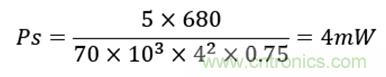 本次設(shè)計(jì)中,輸出功率為 5W,最大開關(guān)頻率設(shè)計(jì)為 70KHz。所以,可以計(jì)算得,理論待機(jī)功耗為: