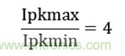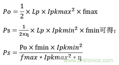 由上式可得,待機(jī)功耗的大小跟變壓器電感量大小,變換器具體的峰值電流無關(guān),只與設(shè)計(jì)的最高工作頻率與芯片最低工作頻率比以及最大設(shè)計(jì)峰值電流和最小峰值電流比有關(guān)。根據(jù)芯片規(guī)格書得: