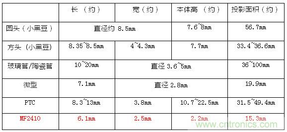 作為安規(guī)元件的保險絲,MF2410通用模塊保險絲滿足了上面的小體積和SMD工藝的需求。相對于傳統(tǒng)保險絲的尺寸,MF的體積小優(yōu)勢十分明顯。